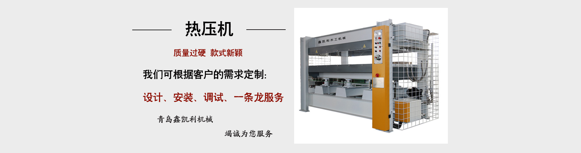青島鑫凱利木工機械有限公司公司主營:各種款式熱壓機、定制異形熱壓機、冷壓機、涂膠機等木工設備